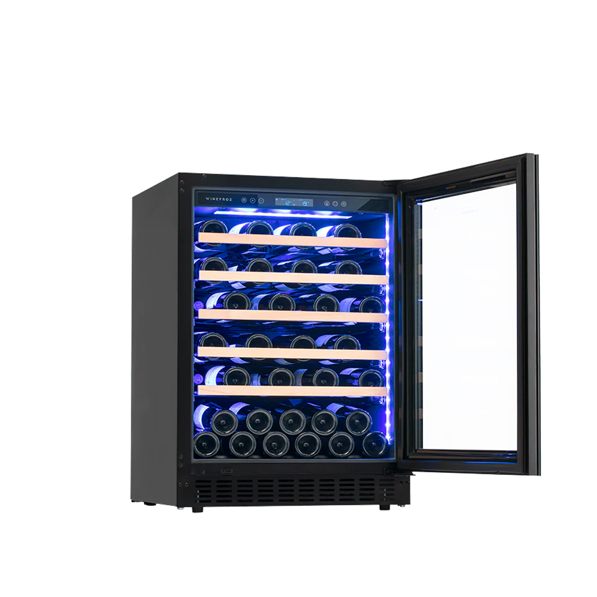 El modelo GD400S, de simple temperatura, tiene puerta de vidrio espejada y permite regularla entre 5ºC a 20ºC según el tipo de vino que desea conservar. Mantiene la humedad controlada entre 60-75% Tiene una capacidad máxima para 56 botellas y cuenta con motor compresor. Posee 6 estantes y puerta de doble vidrio templado con filtro UV con manija integrada. Frost Free.